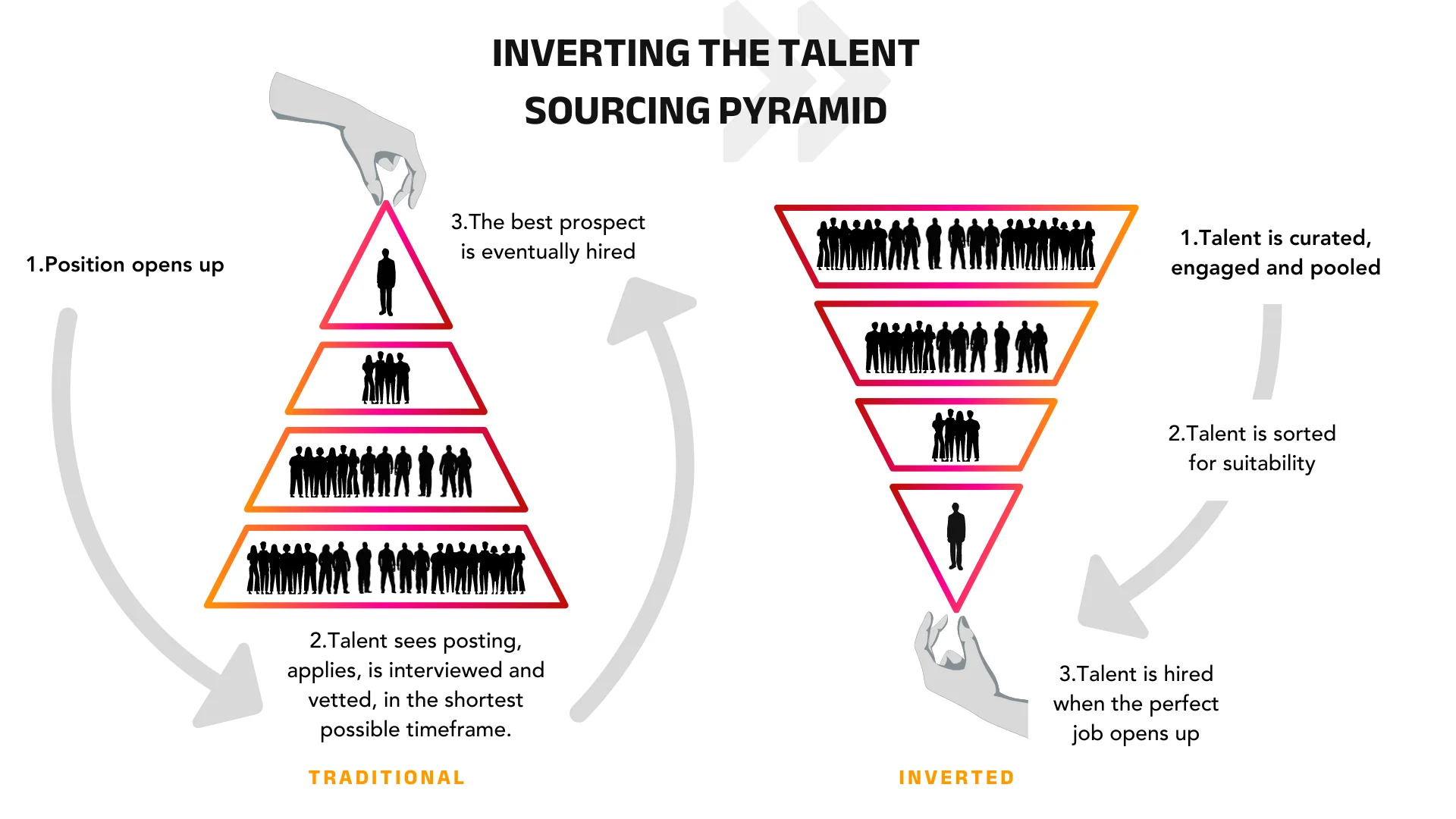 Invert your hiring pyramid by partnering with Us. Instead of spending time screening countless resumes, gain direct access to pre qualified, job-ready talent. We streamline the hiring process by focusing first on top-tier candidates, reducing time to fill and improving quality of hire.